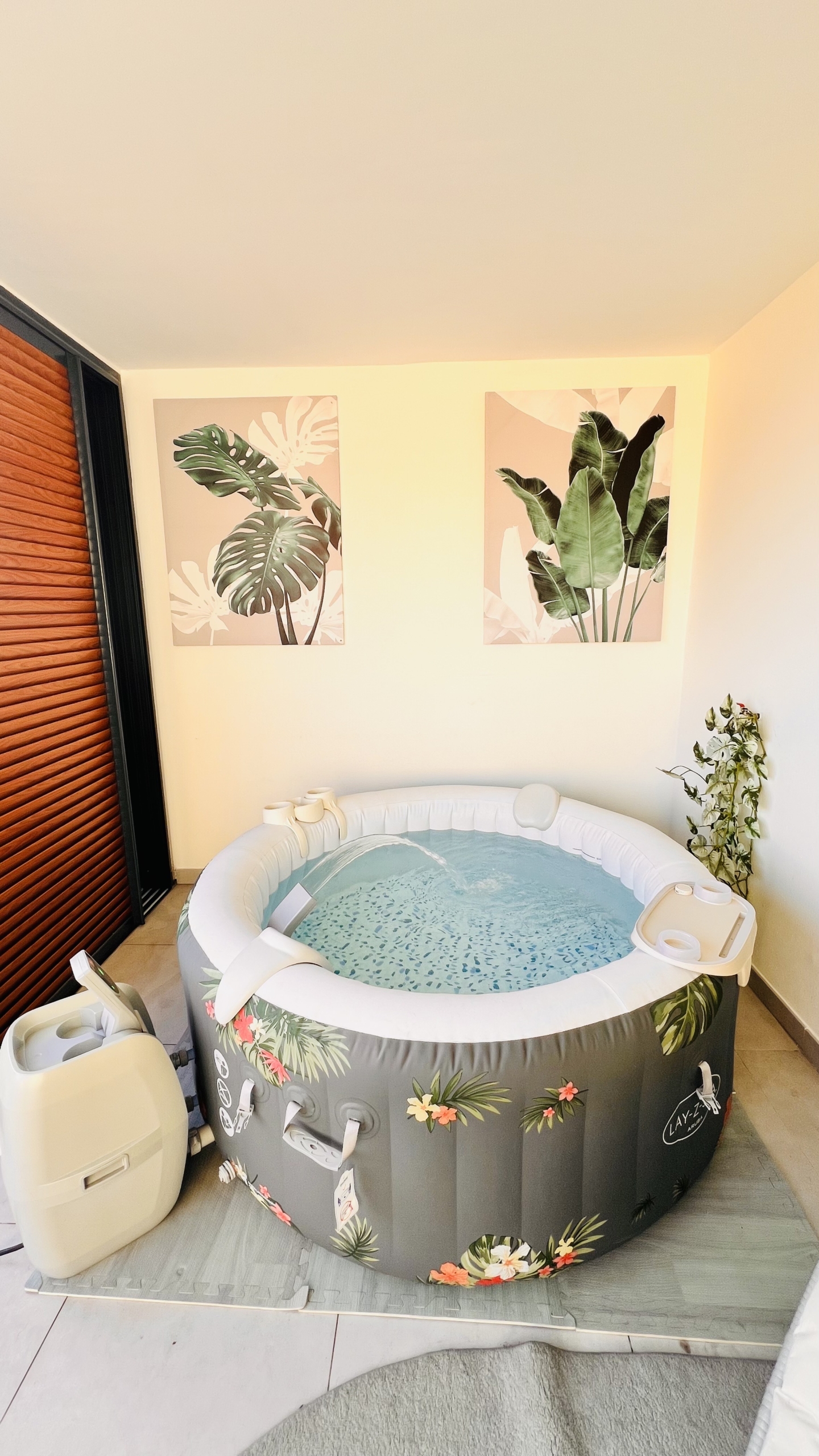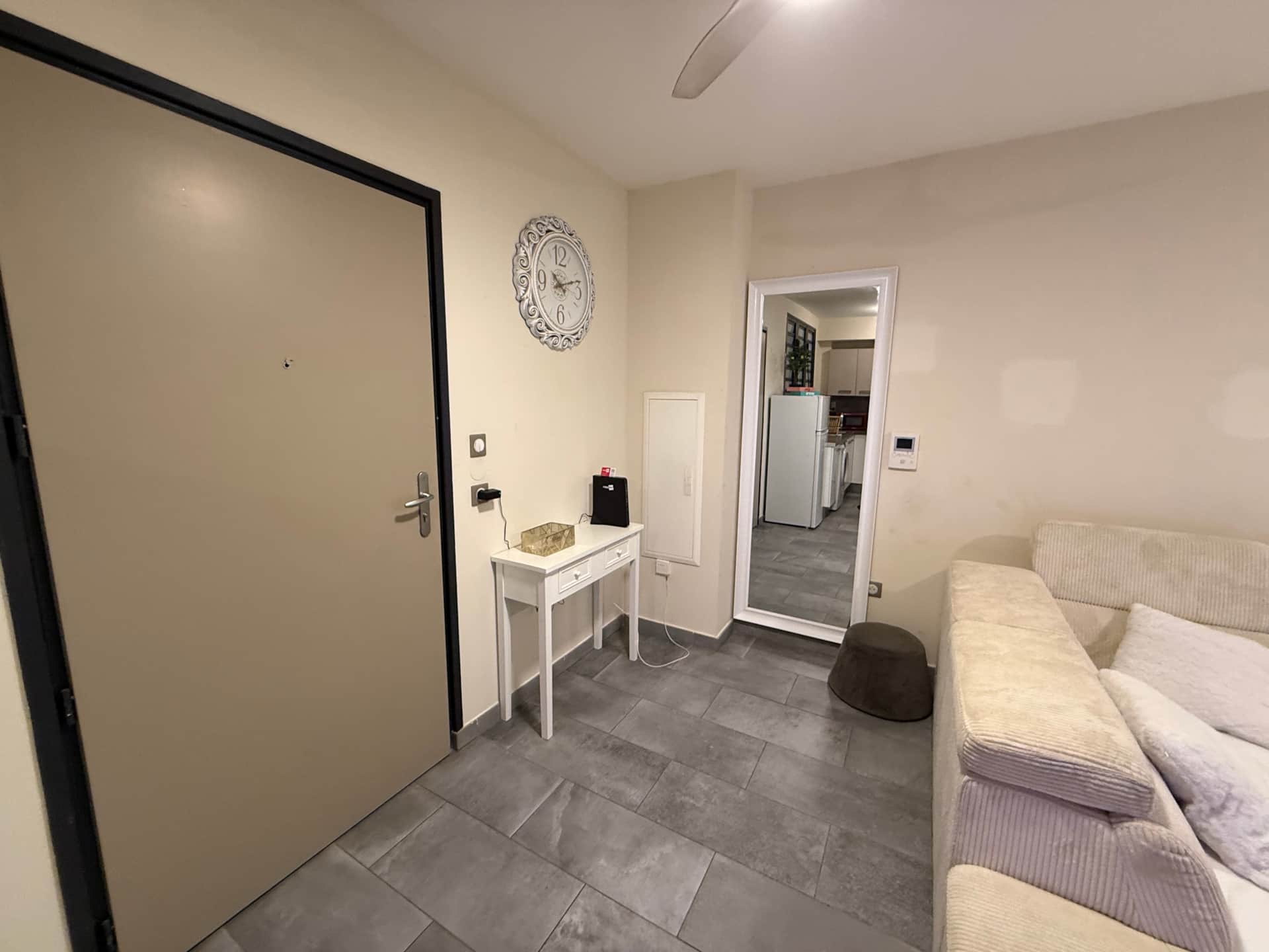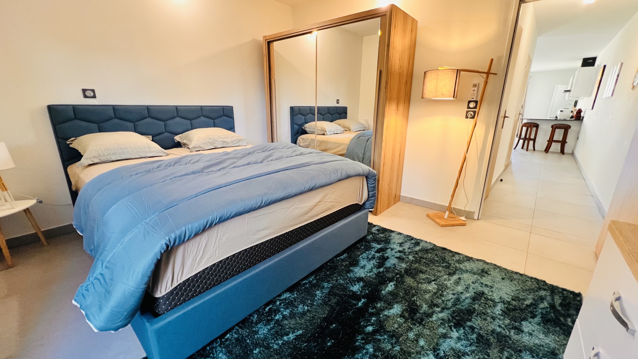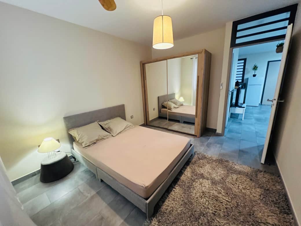 Une chambre pour 2 personnes , un canapé lit 2 places, une cuisine équipé et une salle de bain avec douche à l’italienne et son meuble double vasque, un wc. Equipement : machine à laver, climatisation dans la chambre et salon, télévision, connexion internet, une place de parking, piscine et jacuzzi.