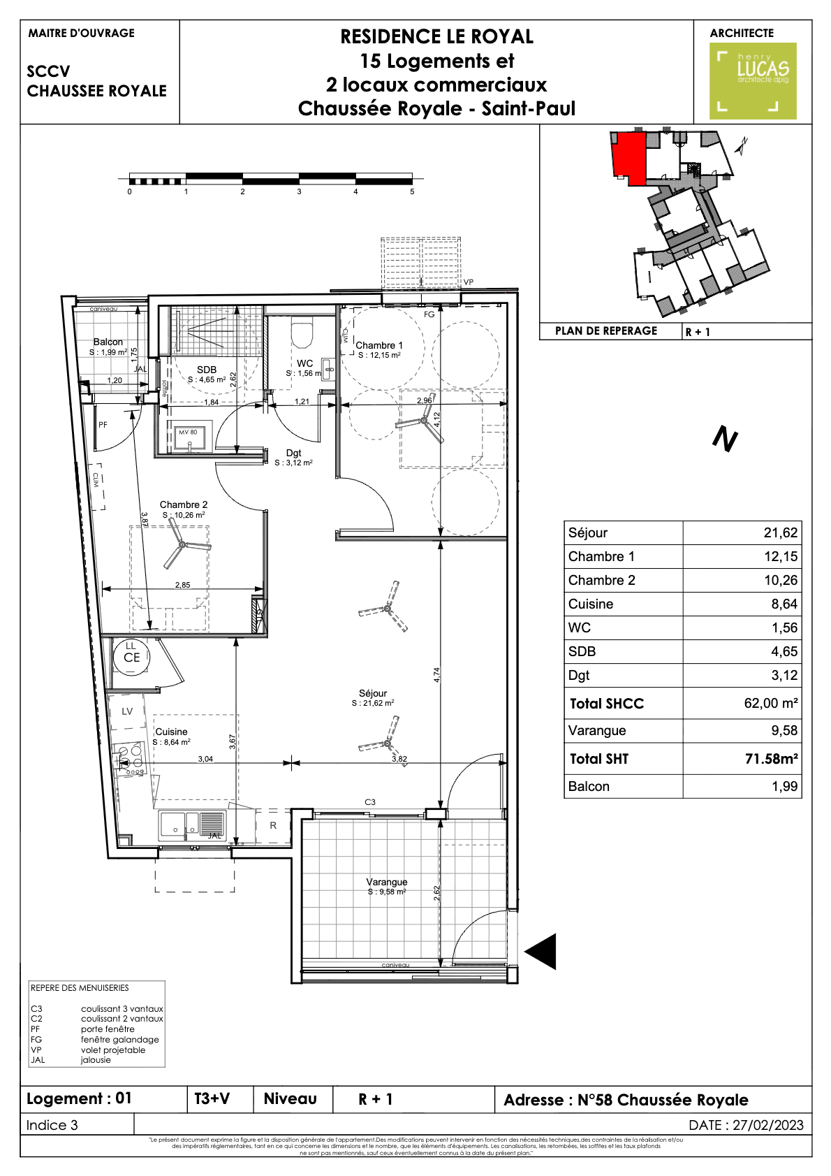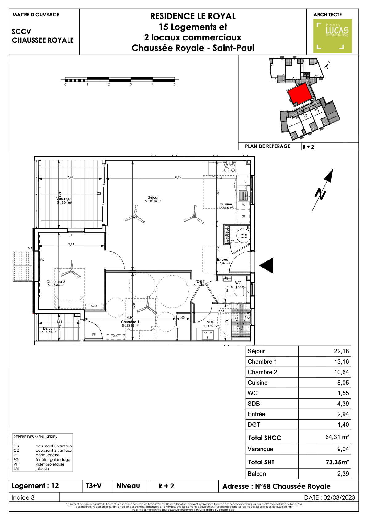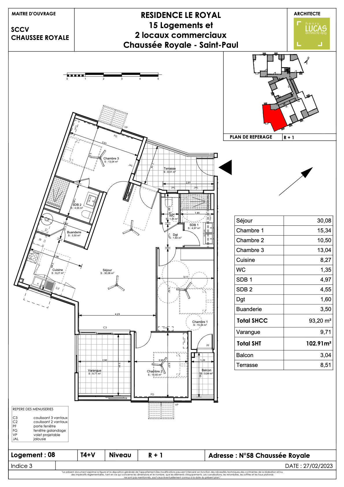 • Appartements spacieux avec parquet LVT façon chêne en intérieur et carrelage en Grès cérame – 60×60 dans la salle de bains, varangue, loggia et balcon